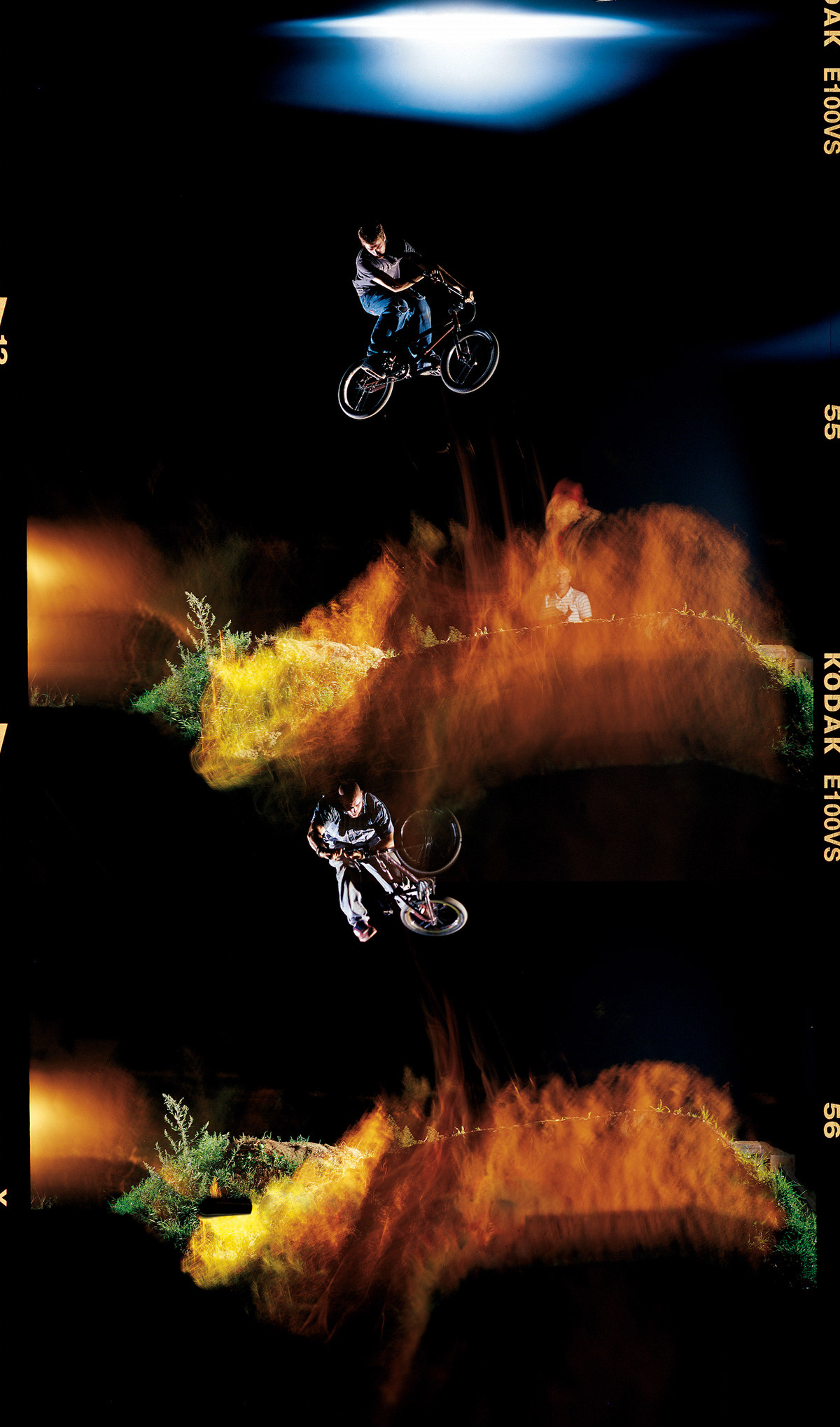 Le film qui se plie dans le Rollier 6X6 à avancement motorisé: superposition partielle des photos, nettetée partielle sur l'image du bas et j'imagine; une entrée de lumière en haut qui "brule" le film.